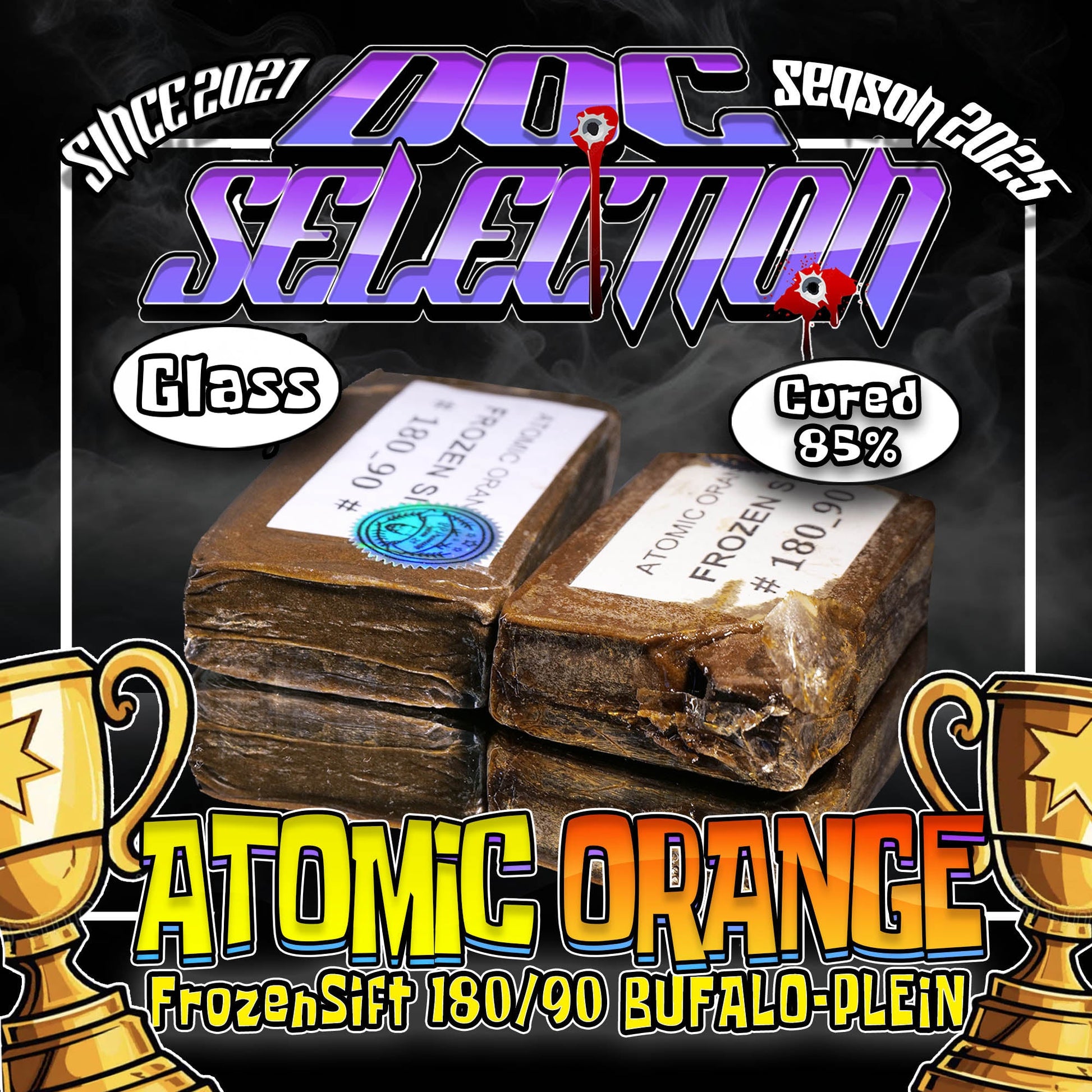 Linea frozen 180/90u di casa Bufalo Plein, hash filtrato con maglie 180/90u in cella frigo levando ben 300gr di scarto vegetale da un kg di polvere sana, polveri date da semi originali dello strainΒ ATOMIC ORANGE , questa categoria di prodotto Γ¨ consigliataΒ  ai palati piΓΉ esigenti abituati a livelli di terpene alto che gia hanno esperienza e dimestichezza con alti contenuti di thc.Β